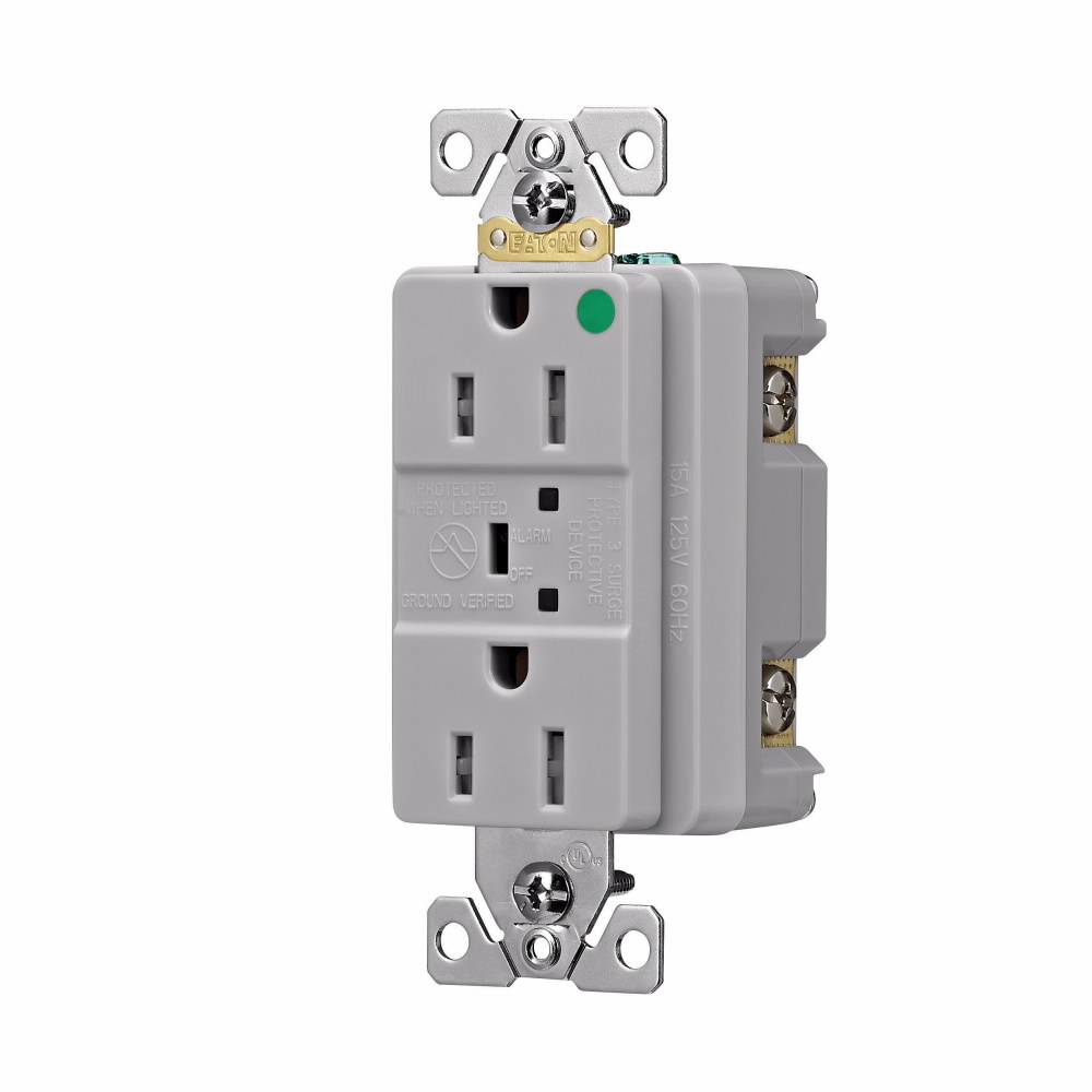 EATON TR8262GYS Wallbox Surge Receptacle, 125 V, 15 A