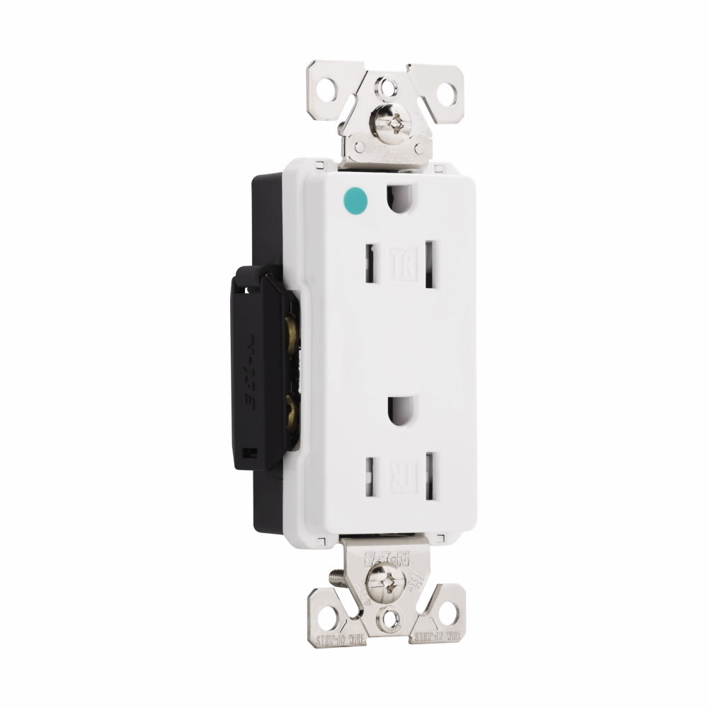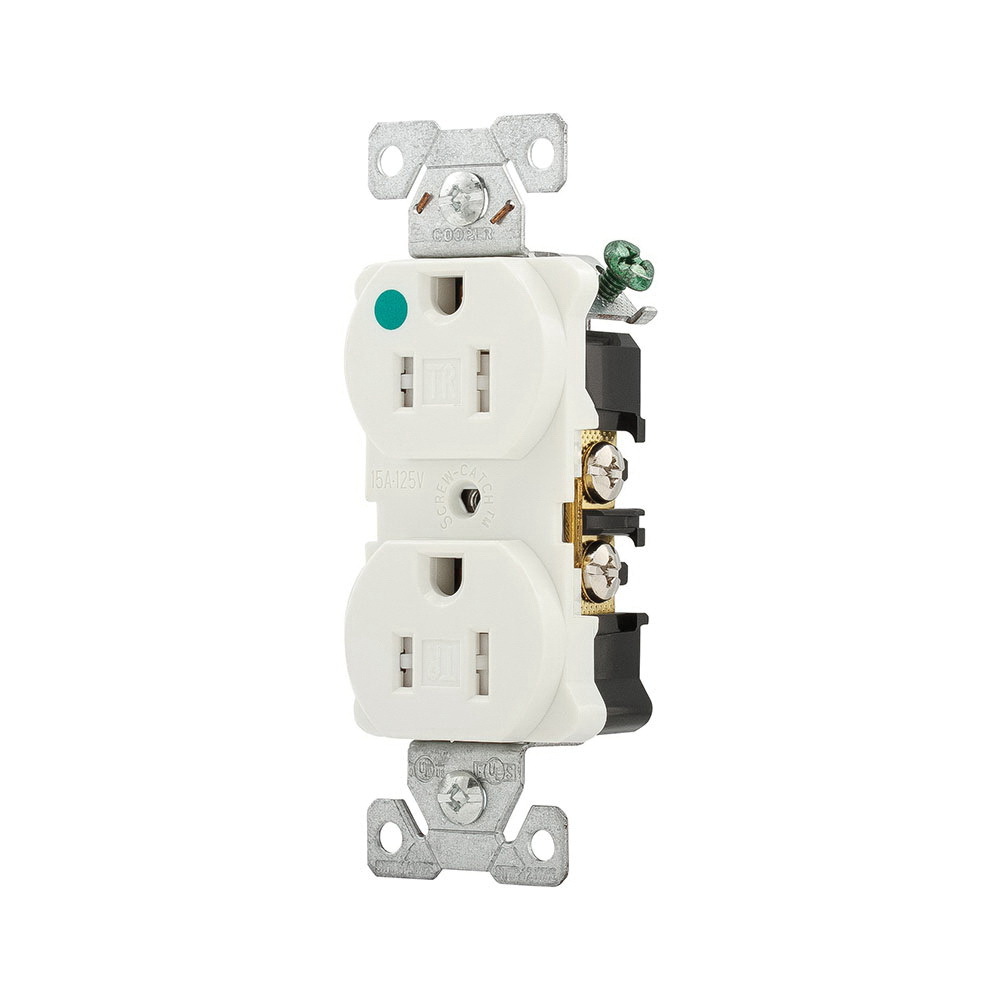 EATON Arrow Hart® TR8262W TR8262 Decorator Duplex Extra Heavy Duty Grounding Tamper-Resistant Straight Blade Receptacle, 125 VAC, 15 A, 2 Poles, 3 Wires, White