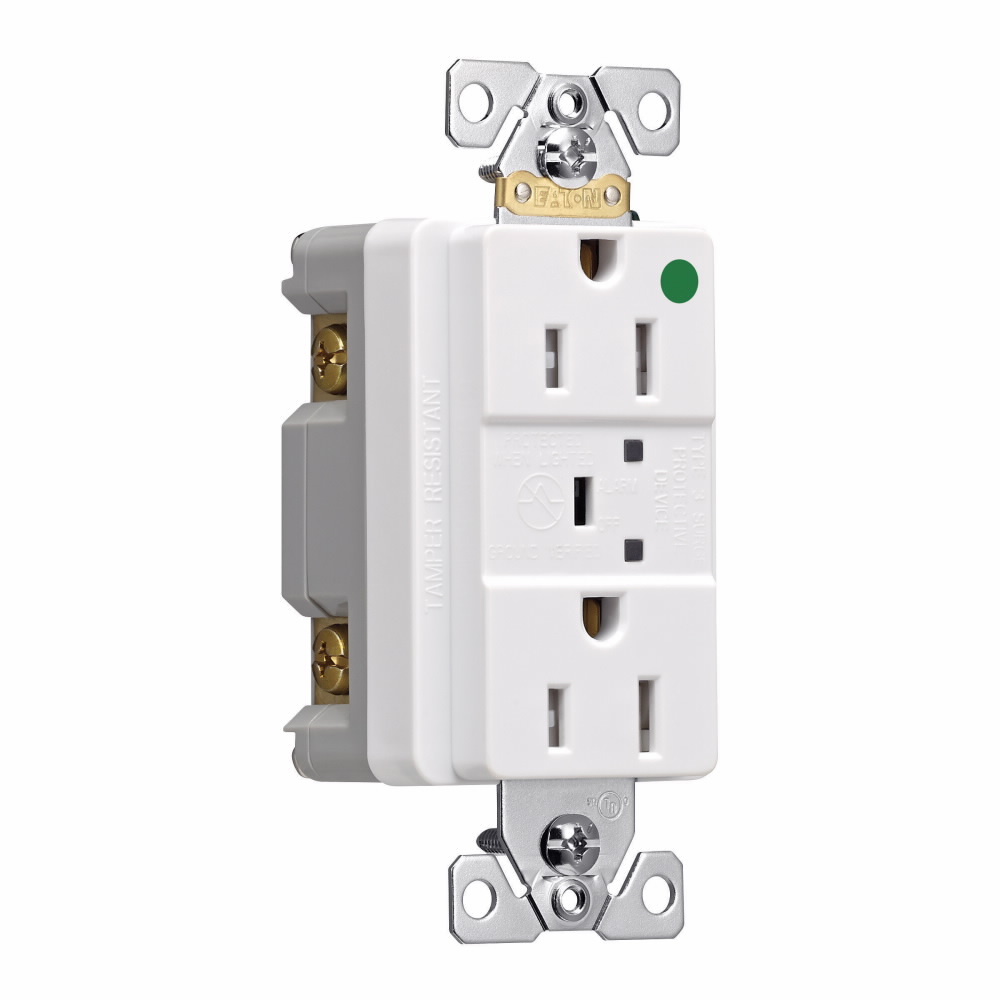 EATON TR8262WS Wallbox Surge Receptacle, 125 V, 15 A