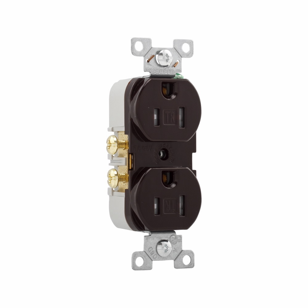 EATON Arrow Hart® TRCR15B TRCR15 Duplex Straight Blade Receptacle, 125 V, 15 A, 2 Poles, 3 Wires, Brown
