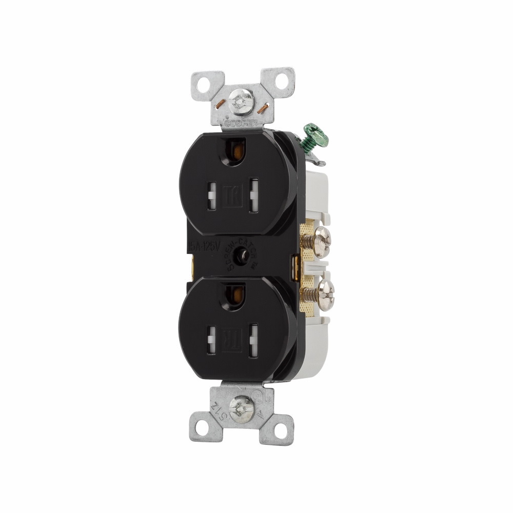 EATON Arrow Hart® TRCR15BK TRCR15 Duplex Straight Blade Receptacle, 125 V, 15 A, 2 Poles, 3 Wires, Black