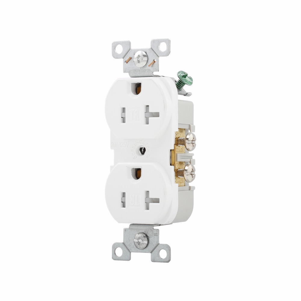 EATON Arrow Hart™ Eaton Wiring Devices TRCR20W TRCR Duplex Heavy Duty Tamper-Resistant Straight Blade Receptacle, 125 VAC, 20 A, 2 Poles, 3 Wires, White