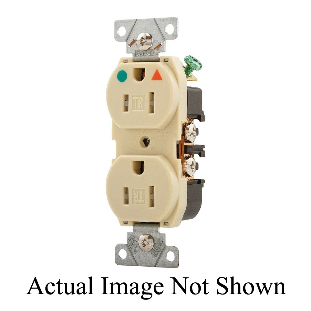EATON Arrow Hart® TRIG8200W TRIG8200 Duplex Extra Heavy Duty Grounding Isolated Premium Tamper-Resistant Straight Blade Receptacle, 125 VAC, 15 A, 2 Poles, 3 Wires, White