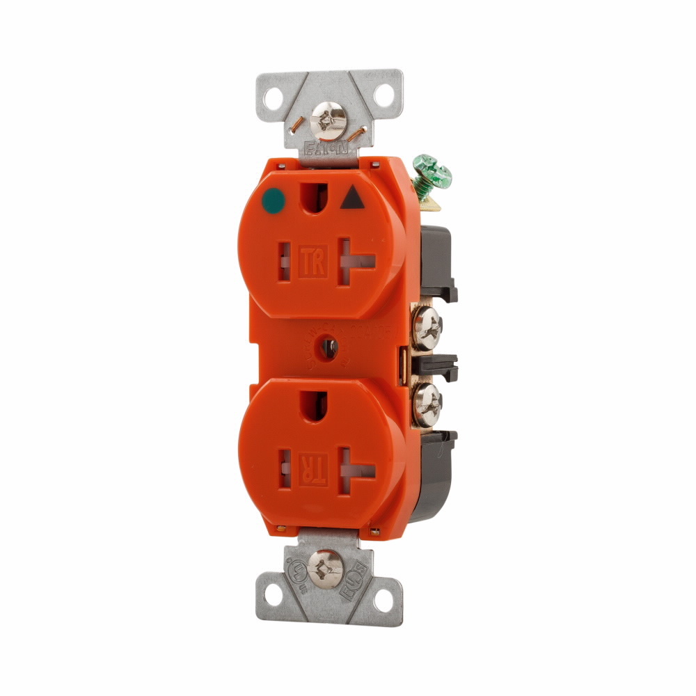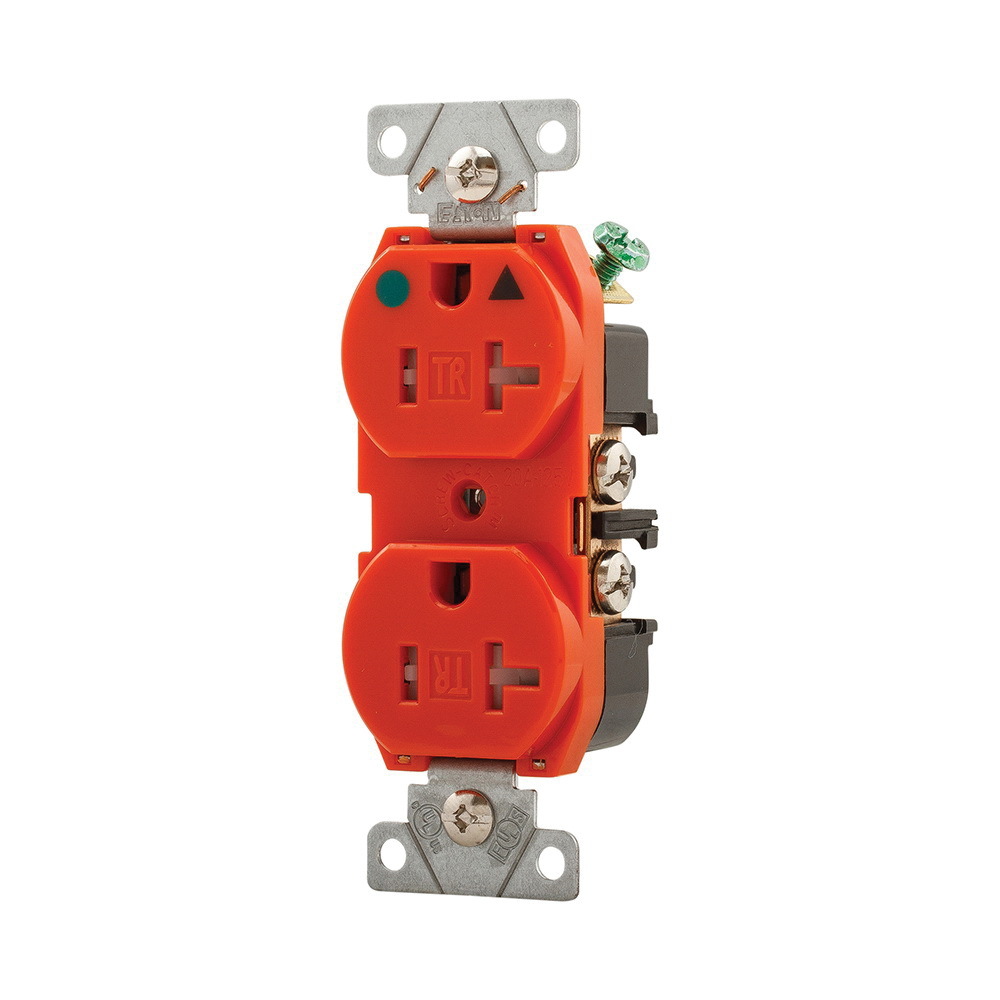 EATON Arrow Hart® TRIG8300RN TRIG8300 Duplex Extra Heavy Duty Grounding Isolated Premium Tamper-Resistant Straight Blade Receptacle, 125 VAC, 20 A, 2 Poles, 3 Wires, Orange