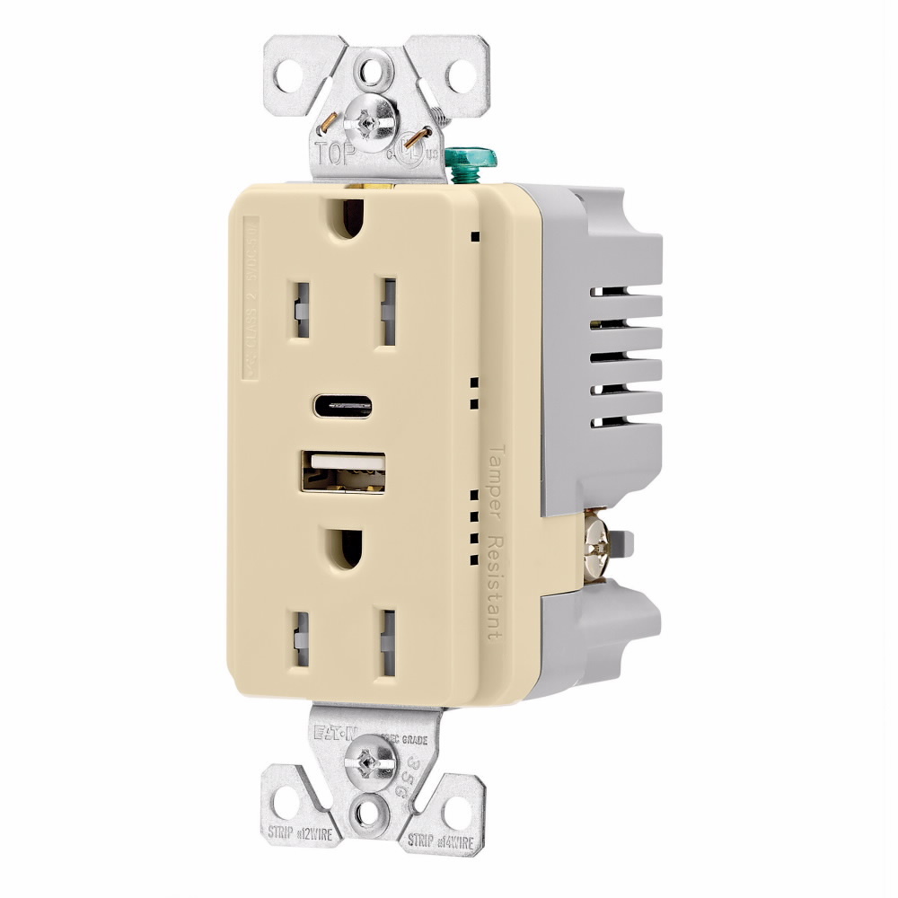 EATON TRUSBAC15V-BOX Duplex Receptacle, 15 A 125 VAC, 2 Poles, 3 Wires, Ivory