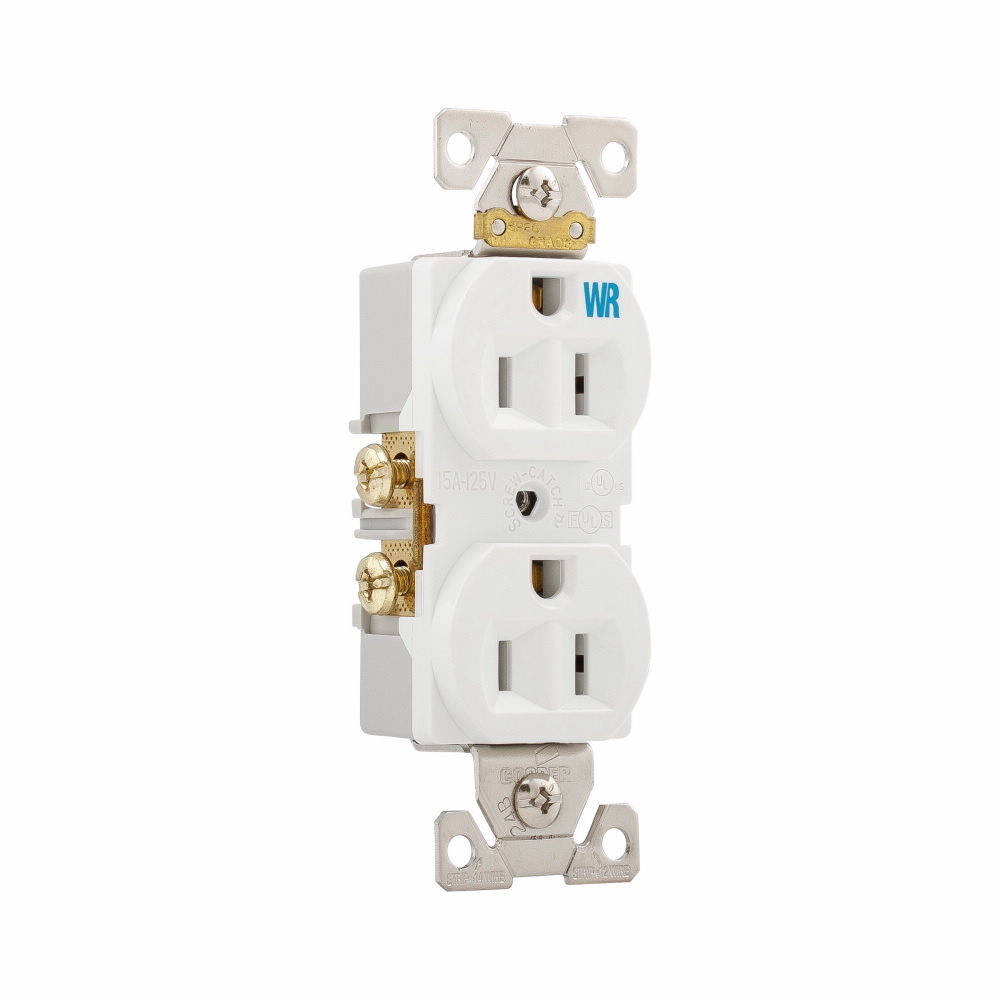 EATON Arrow Hart® WRBR15W WRBR15 Duplex Grounding Standard Tamper/Weather-Resistant Straight Blade Receptacle, 125 VAC, 15 A, 2 Poles, 3 Wires, White