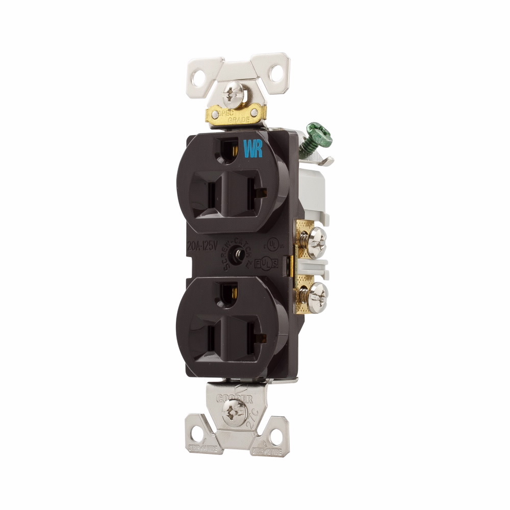 EATON Arrow Hart™ Eaton Wiring Devices WRBR20B WRBR Duplex Weather-Resistant Straight Blade Receptacle, 125 VAC, 20 A, 2 Poles, 3 Wires, Brown
