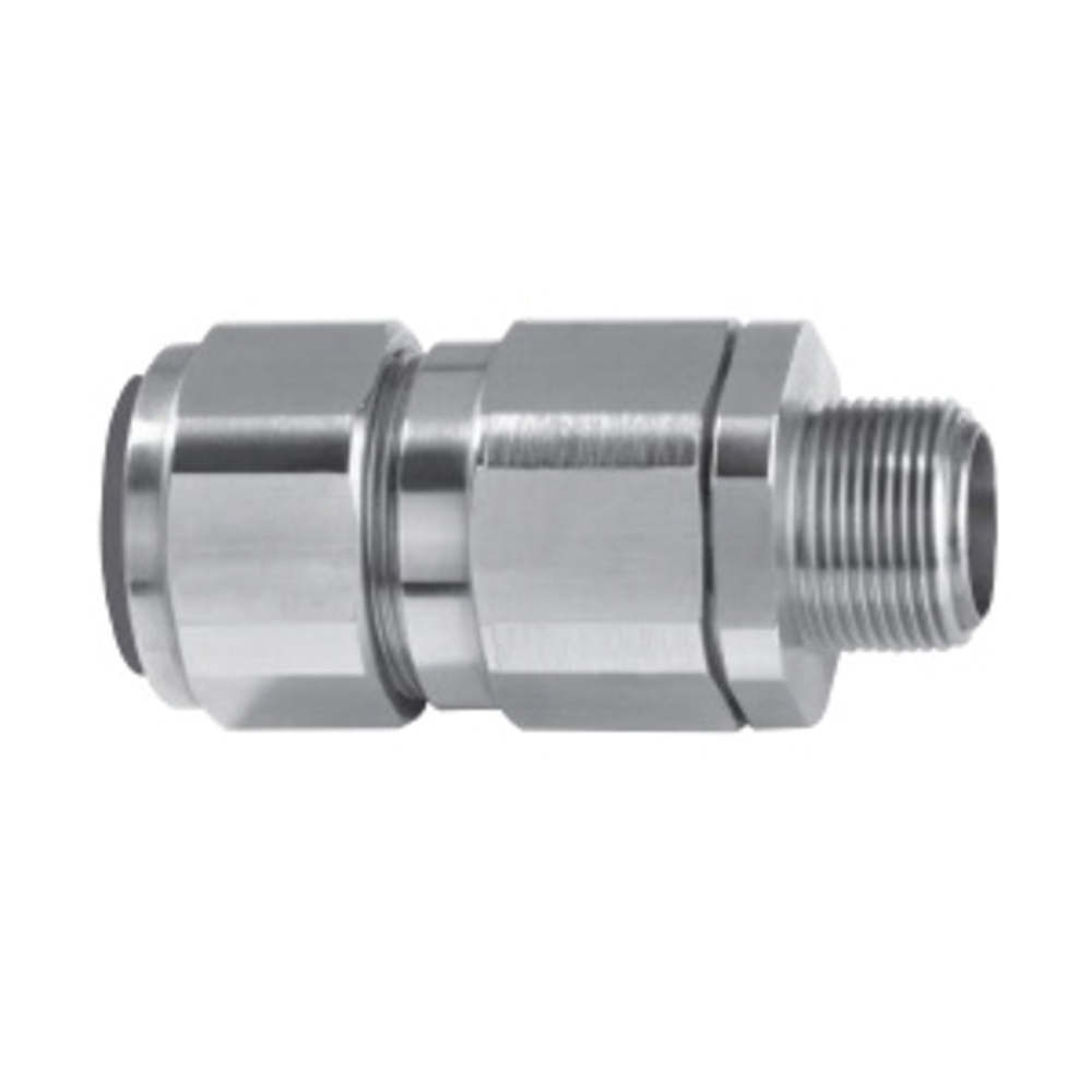 AppletonĀ® 25SPX2KX0755 Compound Barrier Straight Cable Gland Connector, 3/4 in Trade, 0.55 to 0.87 in Cable Openings, Brass, Nickel Plated