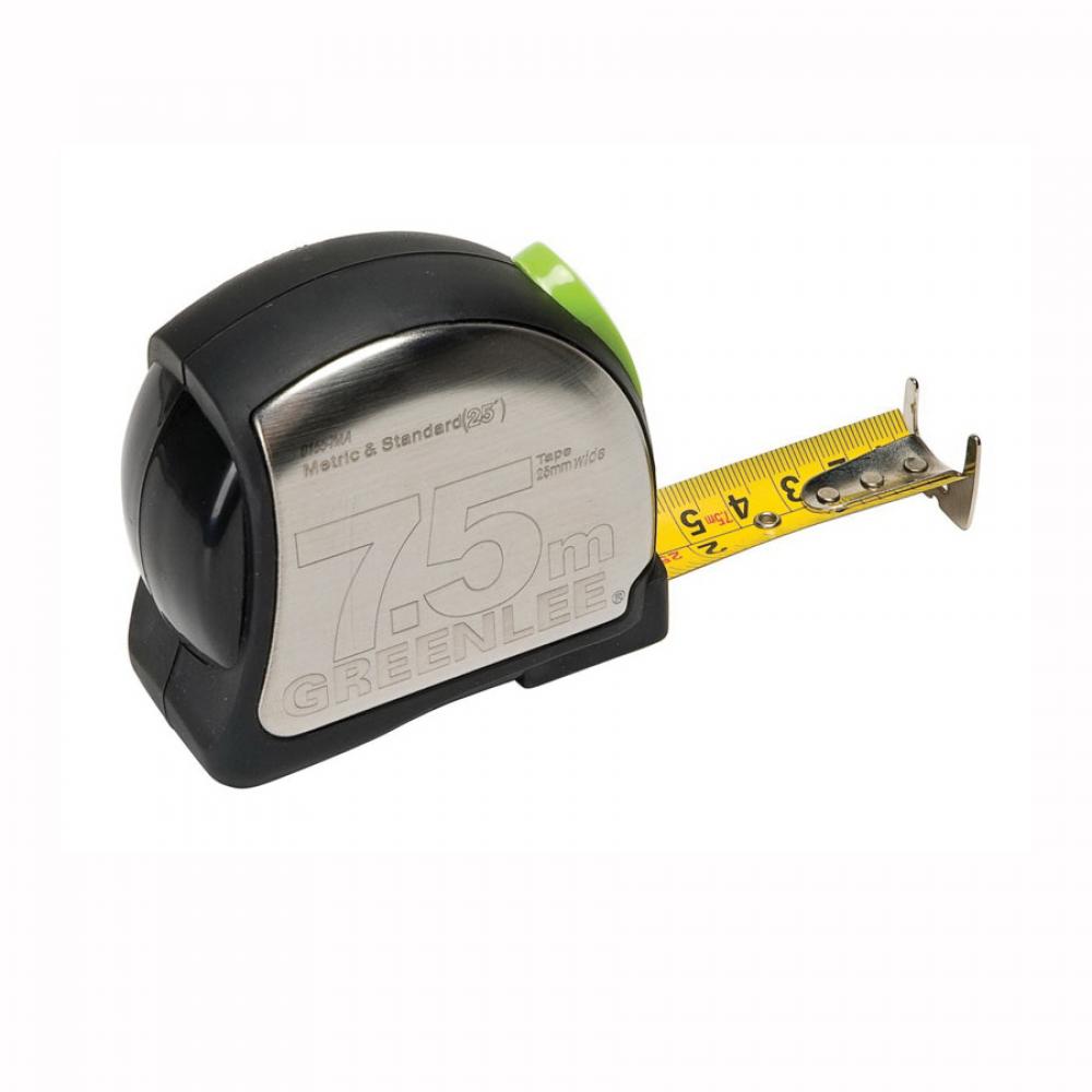Greenlee® 0155-7MA Dual Unit (Pop) Measuring Tape, 7.5 m L x 1 in W Blade, Steel, Metric