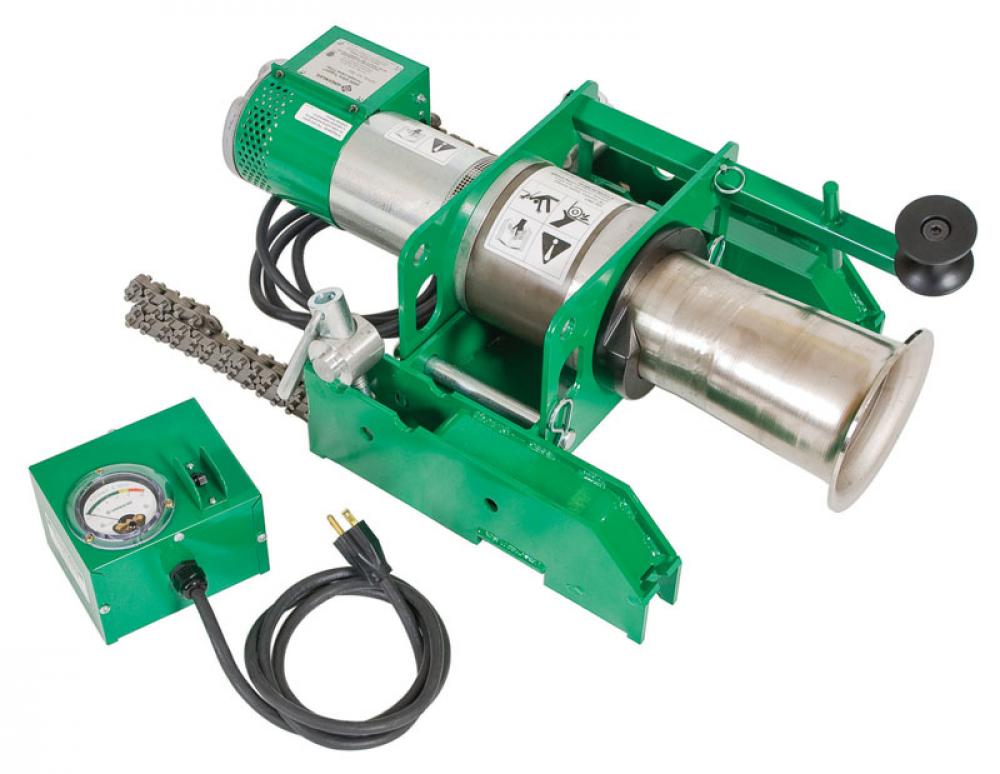 Greenlee® Ultra Tugger® 6801 Cable Puller Package, 8000/6500 lb, 9 ftpm at No Load, 8 ftpm at 2000 lb, 7.5 ftpm at 4000 lb, 7 ftpm at 6000 lb, 6 ftpm at 8000 lb, 7/8 in Double Braided Polyester Composite Rope, 1-1/2 hp, 120 VAC, 20 A, 60 Hz