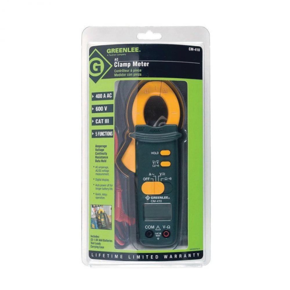 Greenlee® CM-410 Clamp Meter, 200/400 A at 200/600 VAC, 200 Ohm/20 kOhm/200 kOhm/2 mom/20 mom, 50 to 500 Hz, 1.06 in Jaw, LCD Display