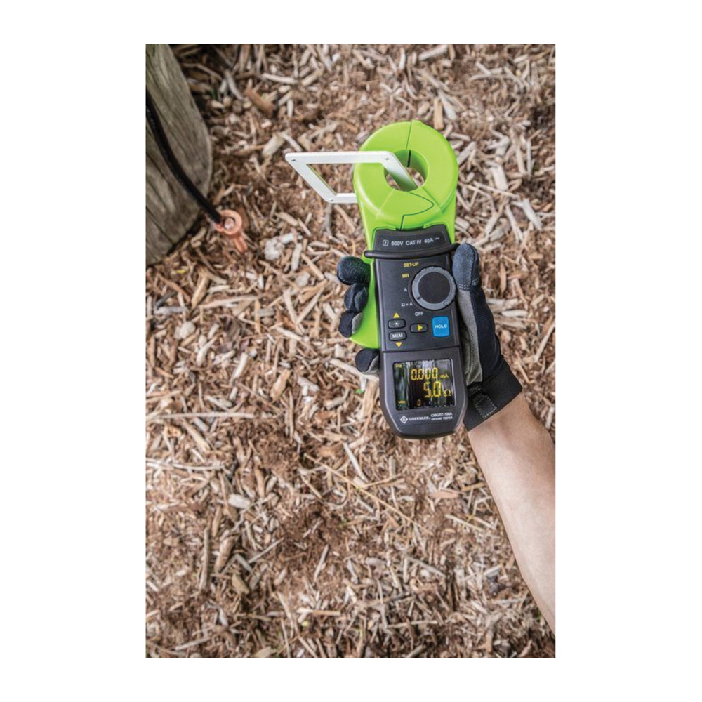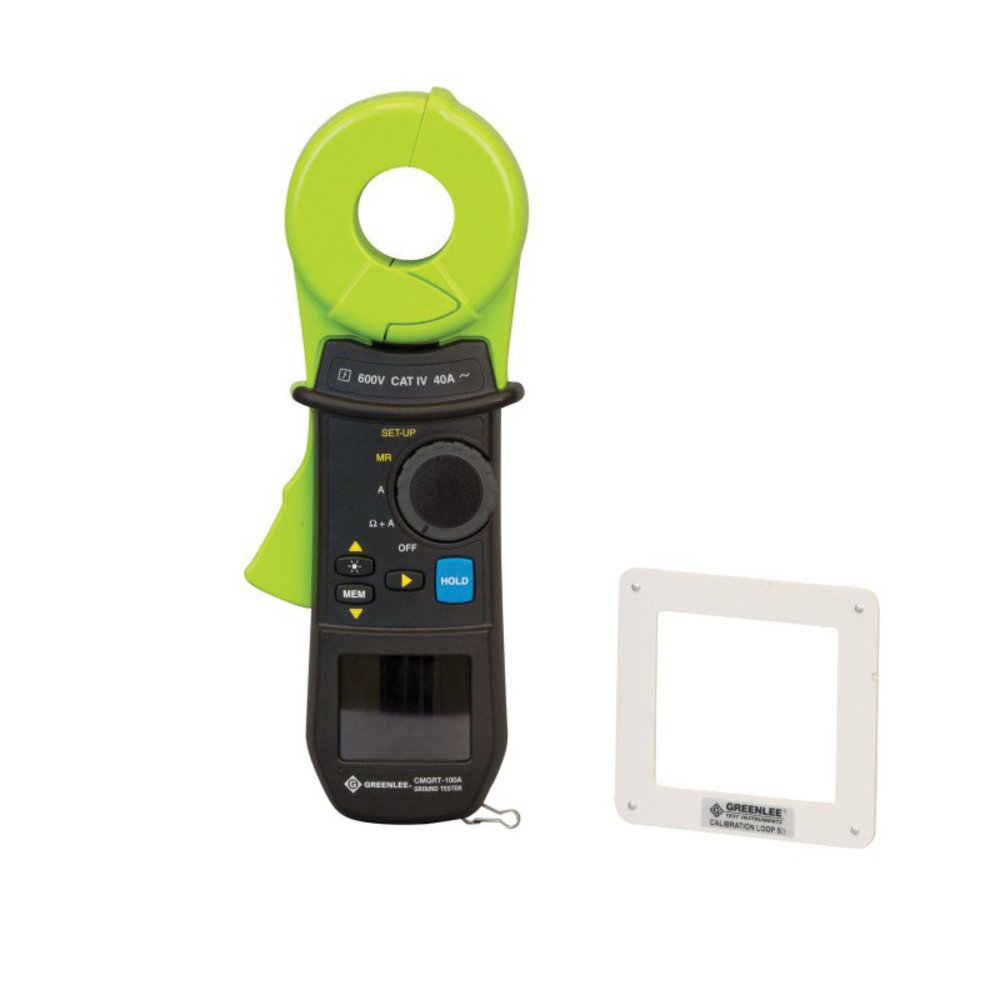 GreenleeĀ® CMGRT-100A-C Calibrated Clamp-On Handheld Ground Resistance Tester, 150/300 VAC Earth, 1 mA to 29.99 A, 50/60/128/2033 Hz, 3-3/4 in Large Digit LCD Display, 9 VDC Alkaline Battery