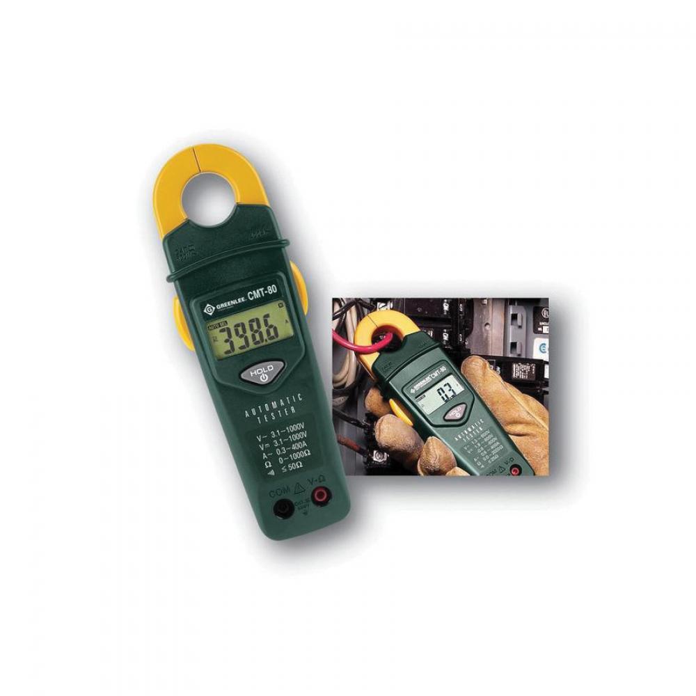 Greenlee® CMT-80 Clamp-On Meter/Electrical Tester, 0.9 to 400 A, 1.3 to 600 VAC, 999 Ohm/9.999 kOhm, 50 to 60 Hz/50 to 500 Hz, 1.06 in Jaw, LCD Display