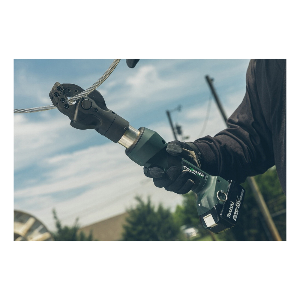 Greenlee® Gator® ESC25LX11 ESC25L Standard Wire Cutter With Vinyl Pouch, 120 VAC Charger, 557 kcmil ACSR, 1/2 in Guy Strand, 3/8 in EHS Guy Strand, 0.98 in Soft Metal, Aluminum, Copper Cutting, (2) 18 VDC 4.0 Ah Lithium-Ion Battery