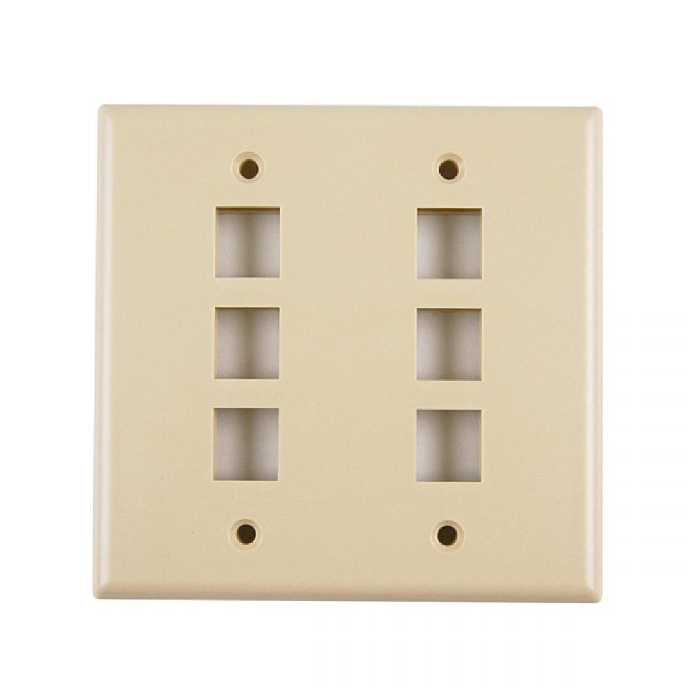 HellermannTyton FPDGSIX-I Standard Faceplate, 2 Gangs, 6 Ports, Modular Jack Module, Flush Mount, ABS