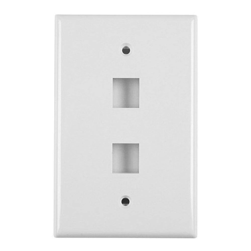 HellermannTyton FPDUAL-FW Standard Faceplate, 1 Gang, 2 Ports, Modular Jack Module, Flush Mount, ABS