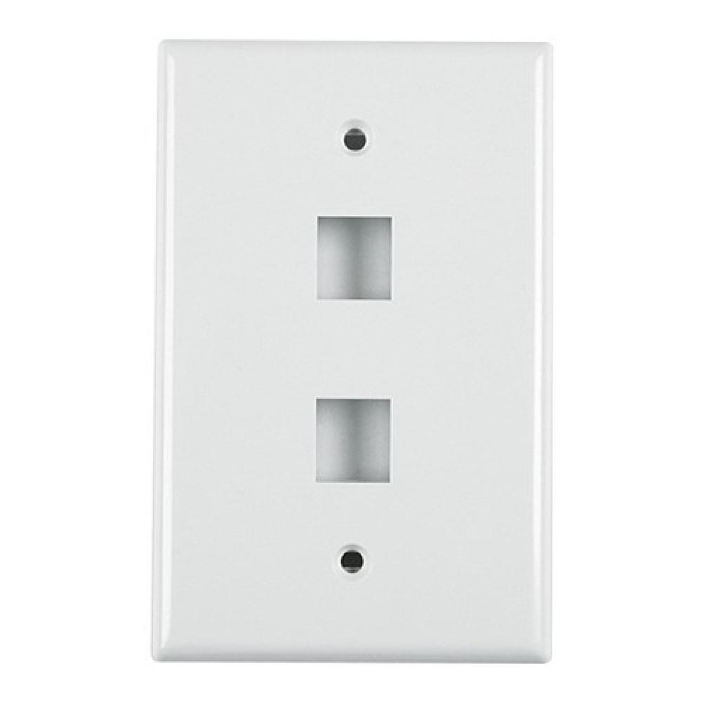 HellermannTyton Work Stations FPDUAL-W Standard Modular Faceplate, 1 Gang, 2 Ports, Flush Mount, ABS