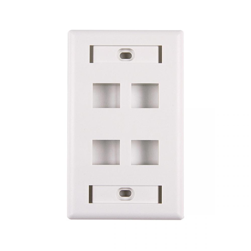 HellermannTyton Work Stations FPIQUAD-W Standard Faceplate, 1 Gang, 6 Ports, Flush Mount, ABS