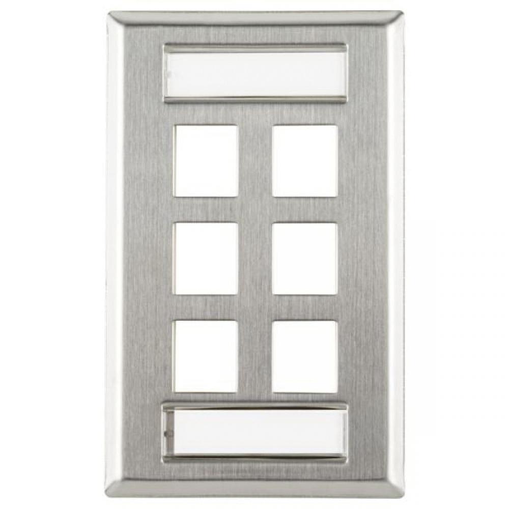 HellermannTyton FPISIX-SS Faceplate With ID Window, 1 Gang, 6 Ports, Modular Jack Module, Flush Mount, Stainless Steel