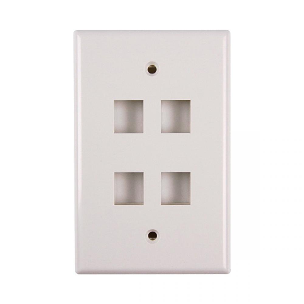HellermannTyton FPMQUAD-FW Midsize Faceplate With ID Window, 1 Gang, 4 Ports, Modular Jack Module, Flush Mount, ABS