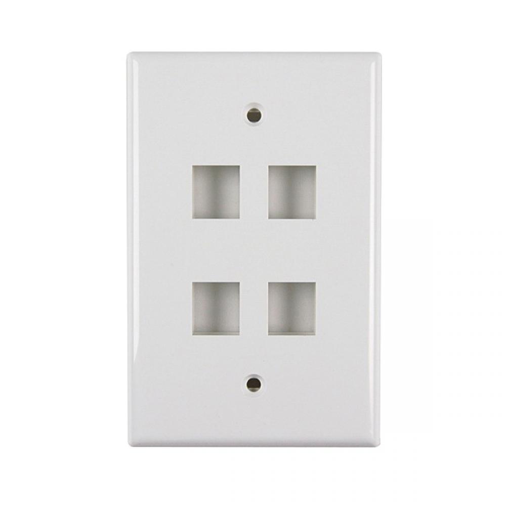HellermannTyton FPMQUAD-W Midsize Faceplate With ID Window, 1 Gang, 4 Ports, Modular Jack Module, Flush Mount, ABS