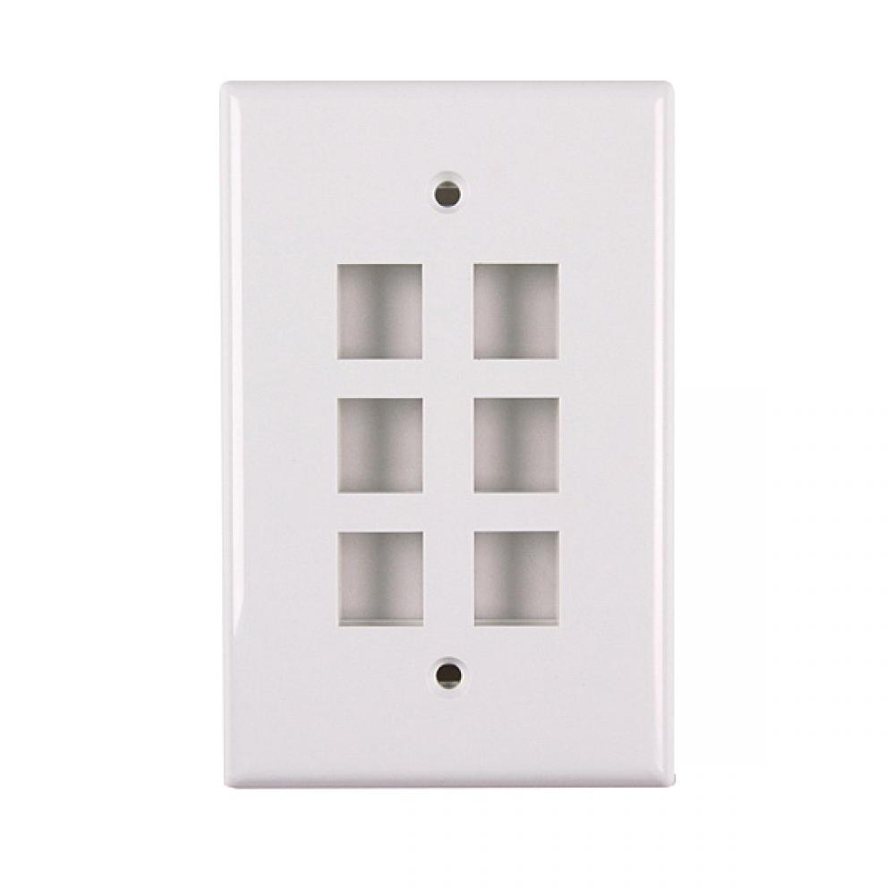 HellermannTyton FPMSIX-W Midsize Faceplate, 1 Gang, 6 Ports, Modular Jack Module, Flush Mount, ABS