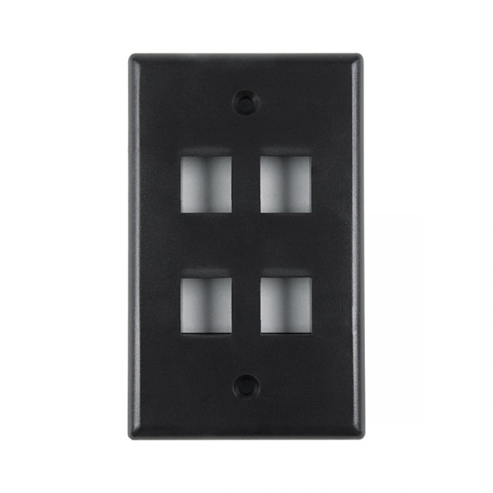 HellermannTyton FPQUAD-BK Standard Faceplate, 1 Gang, 4 Ports, Modular Jack Module, Flush Mount, ABS