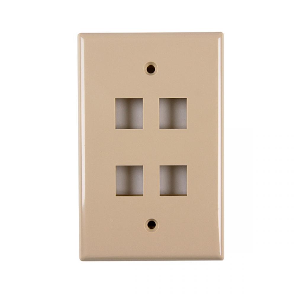 HellermannTyton Work Stations FPQUAD-I Standard Modular Faceplate, 1 Gang, 4 Ports, Flush Mount, ABS
