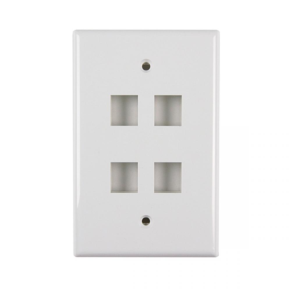 HellermannTyton Work Stations FPQUAD-W Standard Modular Faceplate, 1 Gang, 4 Ports, Flush Mount, ABS