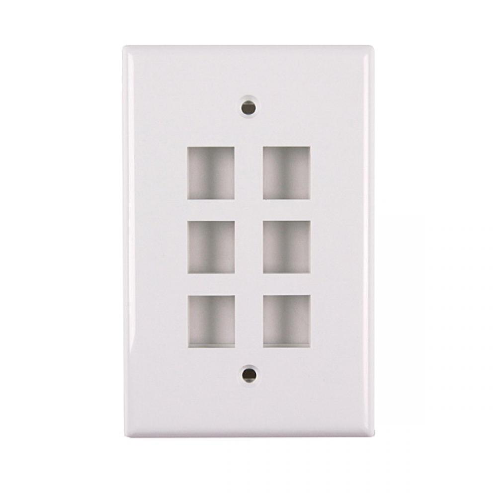 HellermannTyton FPSIX-W Standard Faceplate, 1 Gang, 6 Ports, Modular Jack Module, Flush Mount, ABS