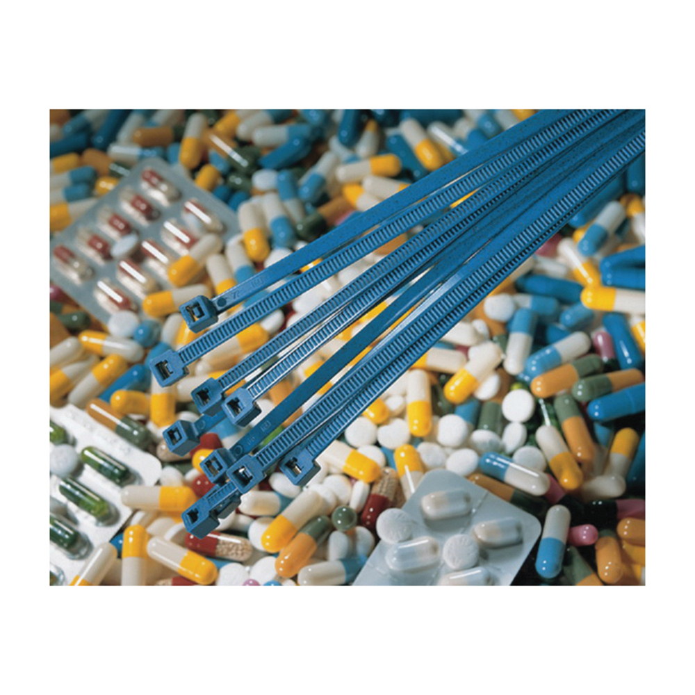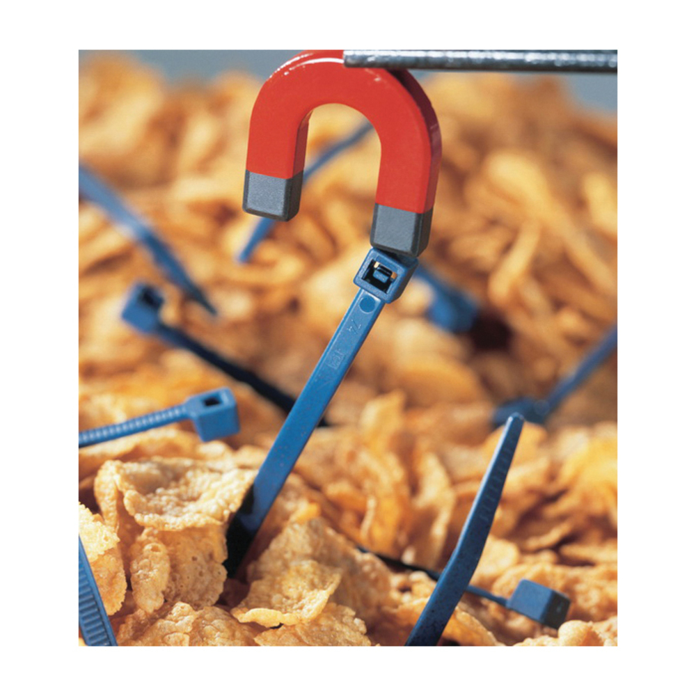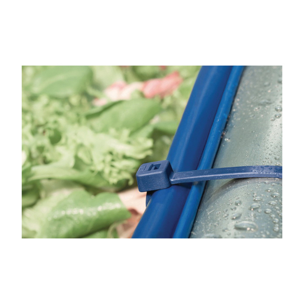 HellermannTyton MCT120R Detectable Inside Serrated Cable Tie, 387 mm L x 7.6 mm W x 1.8 mm THK, Polyamide 6.6, Blue