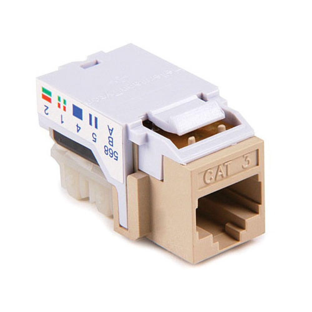 HellermannTyton RJ45FC3-I Cat 3 Class C Keystone Jack, RJ45 Keystone Module, Flush Mount, 1 Port, ABS, Ivory