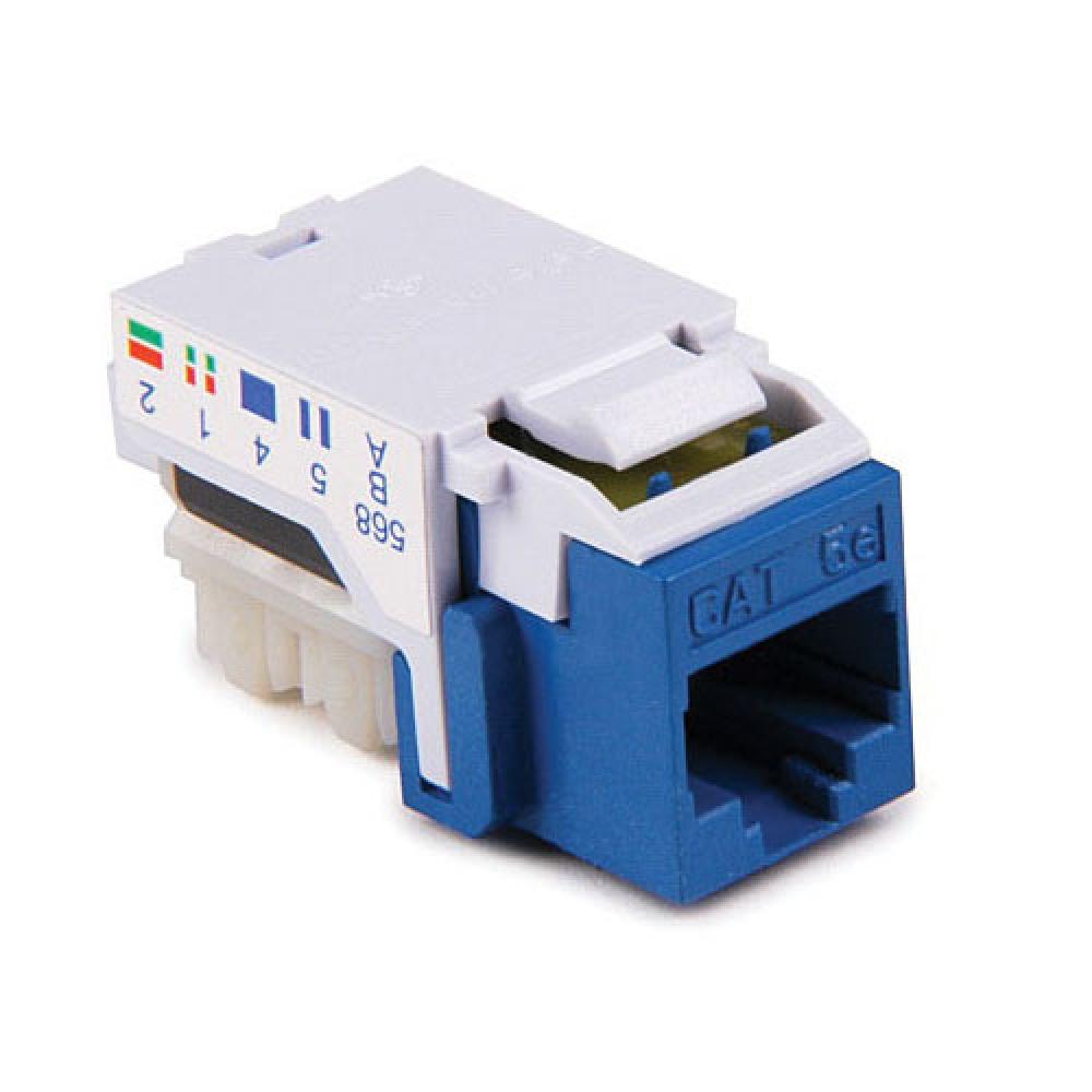 HellermannTyton RJ45FC5EB-BLU Cat 5e Class D Modular Jack, RJ45 Keystone Module, Flush Mount, 1 Port, Thermoplastic, Blue
