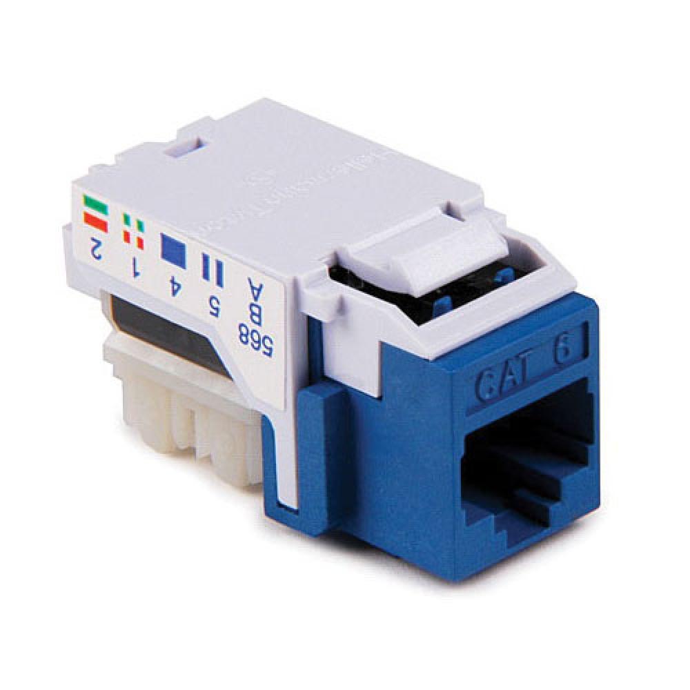 HellermannTyton GigaBand® RJ45FC6B-BLU Cat 6 Class E Modular Jack, RJ45 Keystone Module, Flush Mount, 1 Port, Thermoplastic, Blue