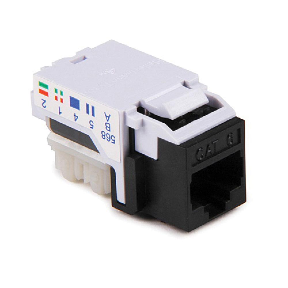 HellermannTyton GigaBand® RJ45FC6-BLK Cat 6 Class E Modular Jack, RJ45 Keystone Module, Flush Mount, 1 Port, Thermoplastic, Black