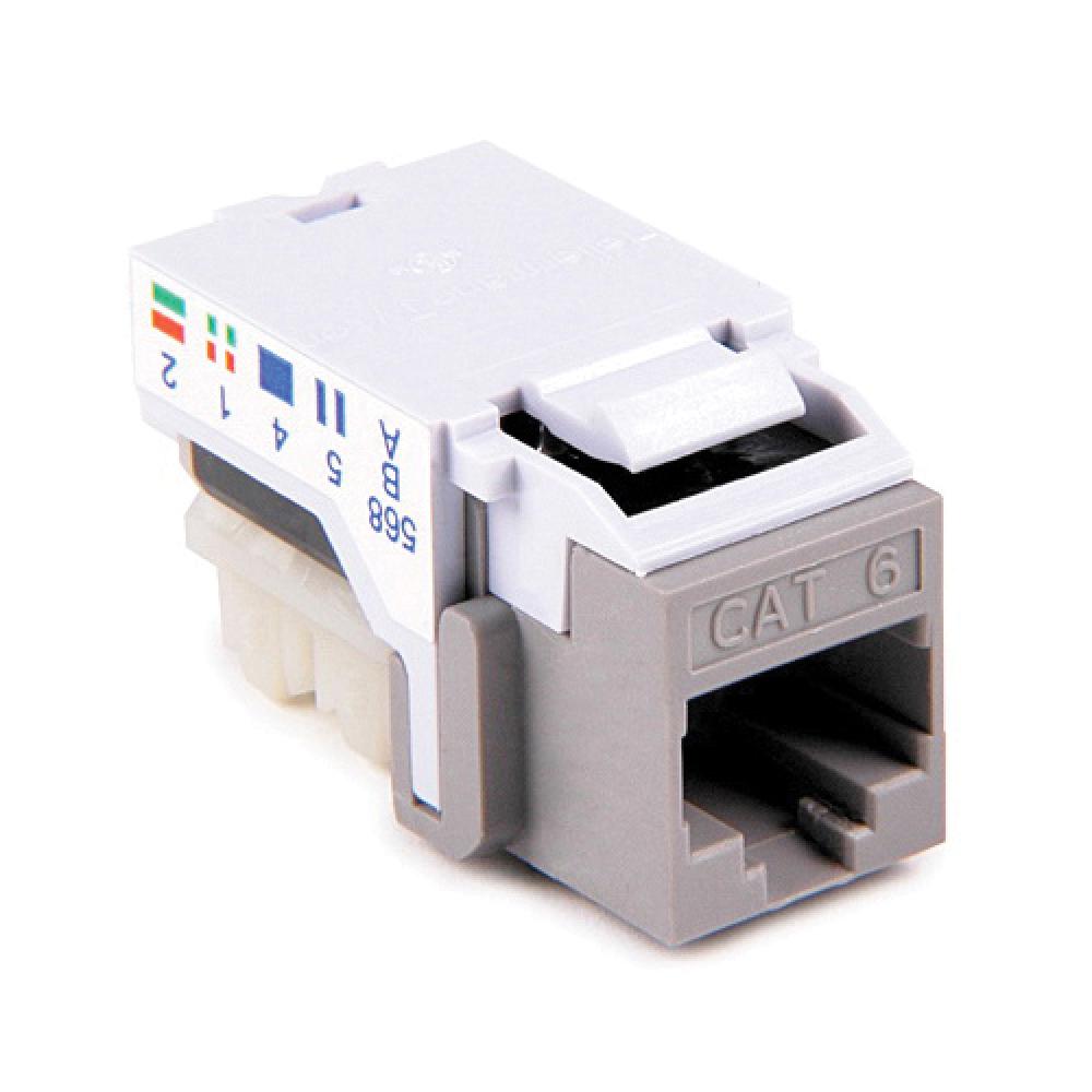 HellermannTyton GigaBand® RJ45FC6-GRY Cat 6 Class E Modular Jack, RJ45 Keystone Module, Flush Mount, 1 Port, Thermoplastic, Gray