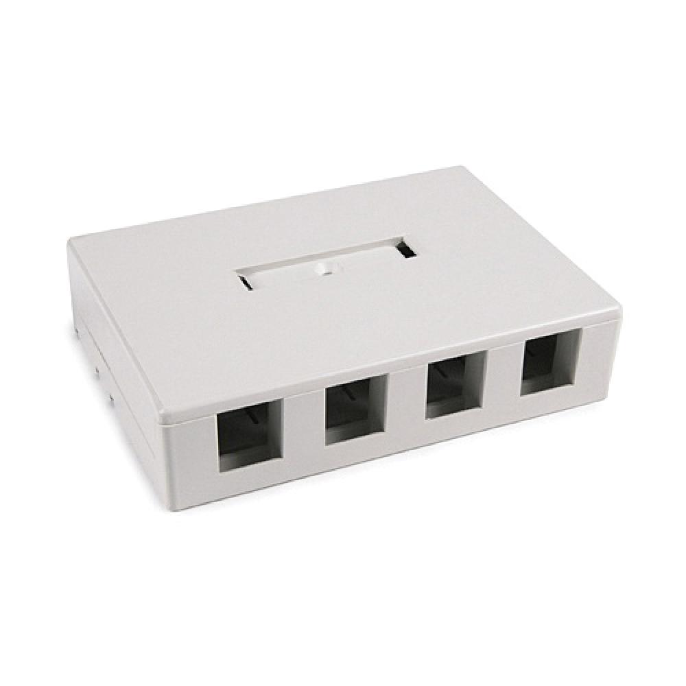 HellermannTyton SMBQUAD-FW Type SMBQUAD 4-Port Plenum Rated Surface Mount Box, Modular Jack, For Use With Modular Jacks and Multi-Media Modules, WAP and IP Devices, Surface Mount, PVC