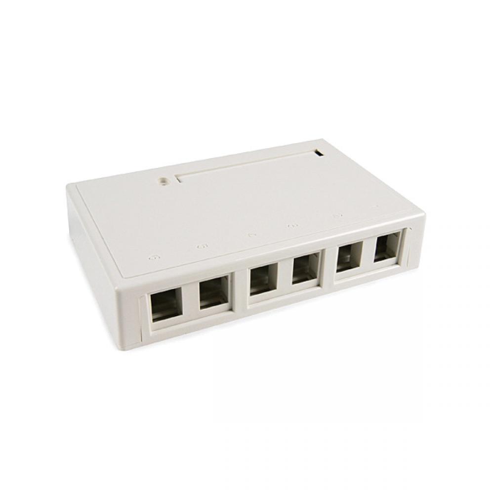 HellermannTyton SMBSIX-FW Type SMBSIX 6-Port Surface Mount Box, Modular Jack, For Use With Modular Jacks and Multi-Media Modules, WAP and IP Devices, Surface Mount, PVC