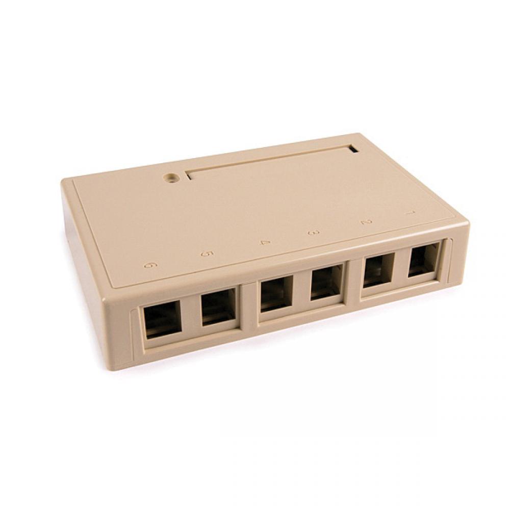HellermannTyton SMBSIX-I Type SMBSIX 6-Port Surface Mount Box, Modular Jack, For Use With Modular Jacks and Multi-Media Modules, WAP and IP Devices, Surface Mount, PVC