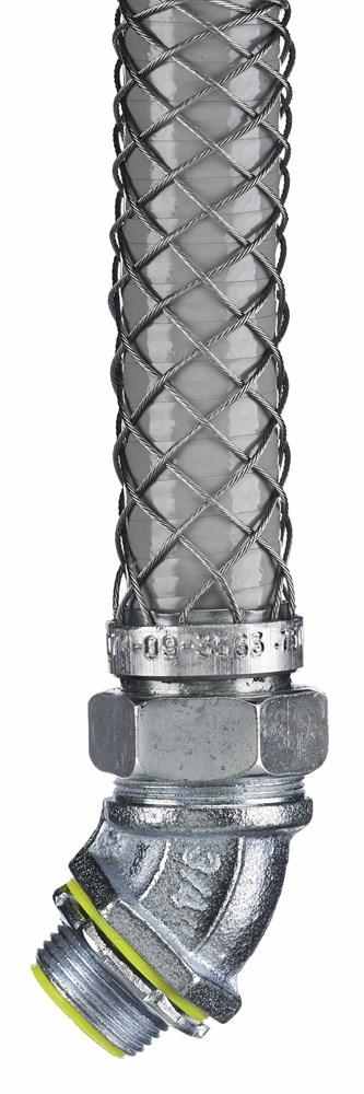 Wiring Device-Kellems 74093566 45 deg Insulated Strain Relief Grip With Male Fitting, Insulated Throat, Stainless Steel Mesh, 1-1/2 in Conduit, 6-3/4 in L Mesh, Steel, Zinc Plated
