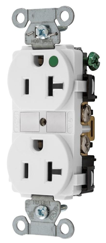 Wiring Device-Kellems Hubbell-PRO 8300WHI 1-Phase Duplex Self-Grounding Heavy Duty Standard Traditional Straight Blade Receptacle, 125 VAC, 20 A, 2 Poles, 3 Wires, White