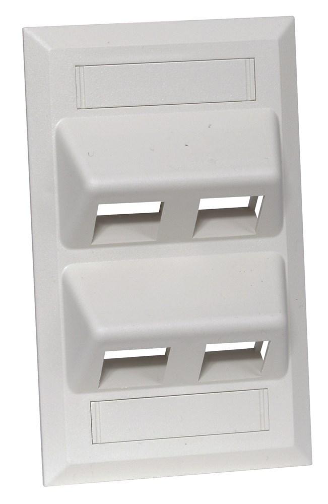 Wiring Device-Kellems iSTATION™ AFP14 Angled Molded Rear Load Keystone Faceplate, 1 Gang, 4 Ports, 45 deg Jack/Audio/Video Module, Threaded Mount, ABS