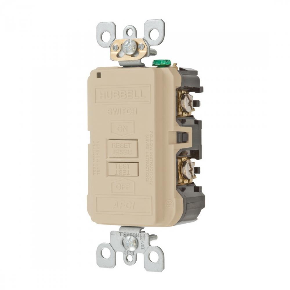 Wiring Device-Kellems AFR20BFI 1-Phase Blank Face Duplex Grounding Standard Straight Blade AFCI Receptacle, 125 VAC, 20 A, 2 Poles, 3 Wires, Ivory