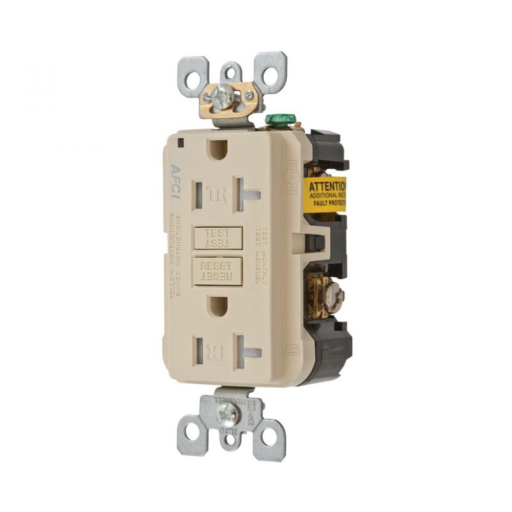 Wiring Device-Kellems AFR20TRI Decorator Duplex Standard Tamper Resistant Arc Fault Receptacle, 125 VAC, 20 A, 2 Poles, 3 Wires, Ivory