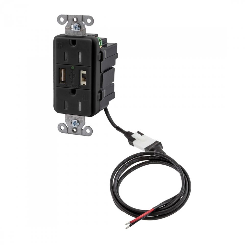 Wiring Device-Kellems iSTATION™ netSELECT® AVPS15BK Duplex Decorator Standard Tamper Resistant USB Charger Receptacle, 125 VAC, 15 A, 1500 W, 1 Phase, 2 Poles, 3 Wires, Black