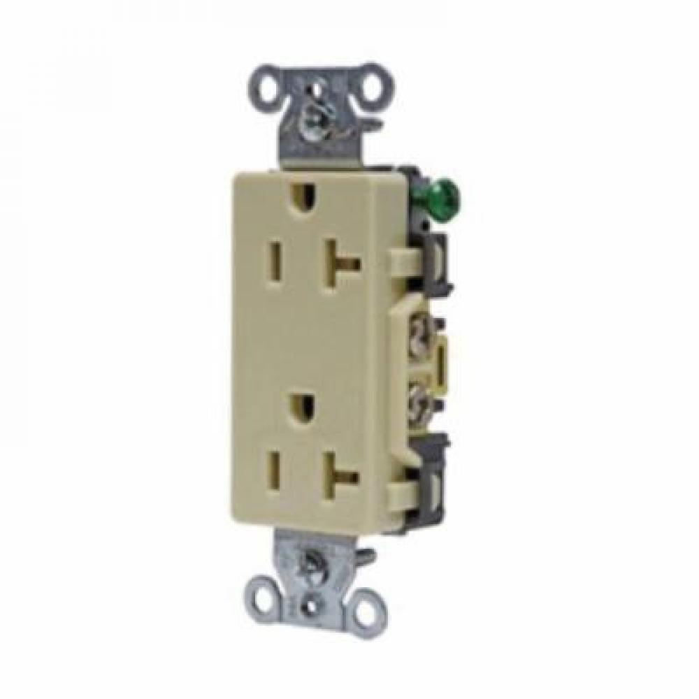 Wiring Device-Kellems StyleLine® DR20I Decorator Duplex Standard Straight Blade Receptacle, 125 VAC, 20 A, 2 Poles, 3 Wires, Ivory