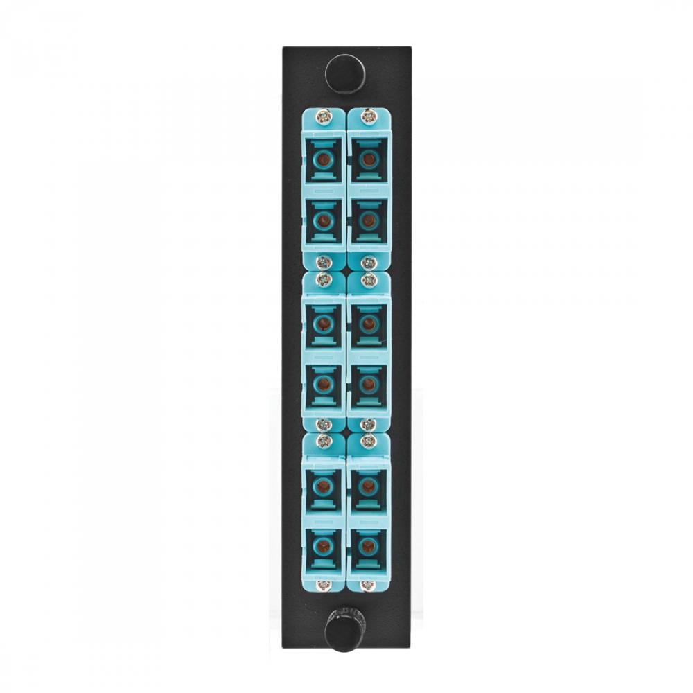 Wiring Device-Kellems OptiChannel™ FSPSCDM6AQ 12-Port Duplex Pre-Loaded Fiber Adapter Panel With (6) Adapters, SC End A, SC End B, (6) 125 um Multi-Mode Fiber
