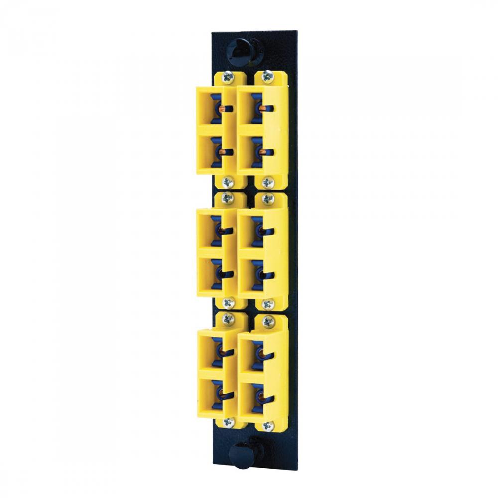 Wiring Device-Kellems OptiChannel™ FSPSCDS6Y 12-Port Duplex Pre-Loaded Fiber Adapter Panel With (6) Adapters, SC End A, SC End B, (12) 125 um Singlemode/Multi-Mode Fiber