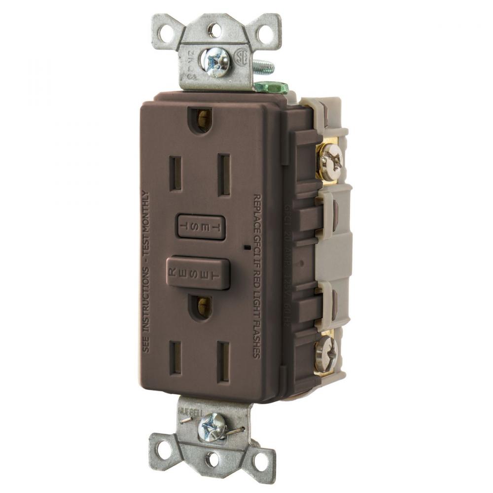 Wiring Device-Kellems Hubbell-PRO GF15 Duplex Standard GFCI Receptacle, 125 VAC, 15 A, 2 Poles, 3 Wires, Brown