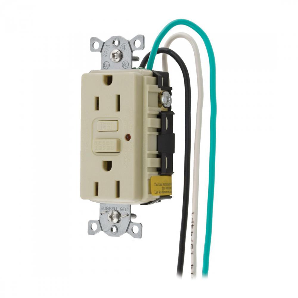 Wiring Device-Kellems GF15ILAP2 Duplex Grounding Heavy Duty GFCI Receptacle, 125 VAC, 15 A, 2 Poles, 3 Wires, Ivory